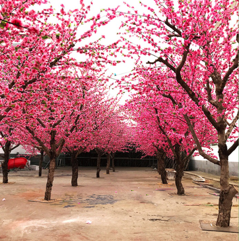 仿真桃花樹造型,室內外通用。 材質為實木樹干、油絹布花葉。 仿真度高,環保耐用。