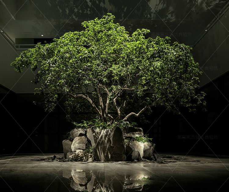 仿真榕樹造型,室內(nèi)外通用。 材質(zhì)為實木樹干、油絹布花葉。 仿真度高,環(huán)保耐用。