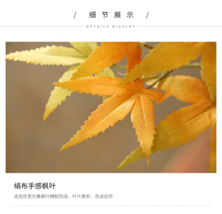仿真紅楓樹造型,室內外通用。 材質為實木樹干、油絹布花葉。 仿真度高,環保耐用。