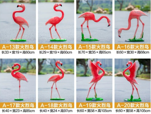 仿真火烈鳥雕塑:材質:環保玻璃鋼;工藝:手工上色、雕刻;顏色:多色;款式:多種款式可選;